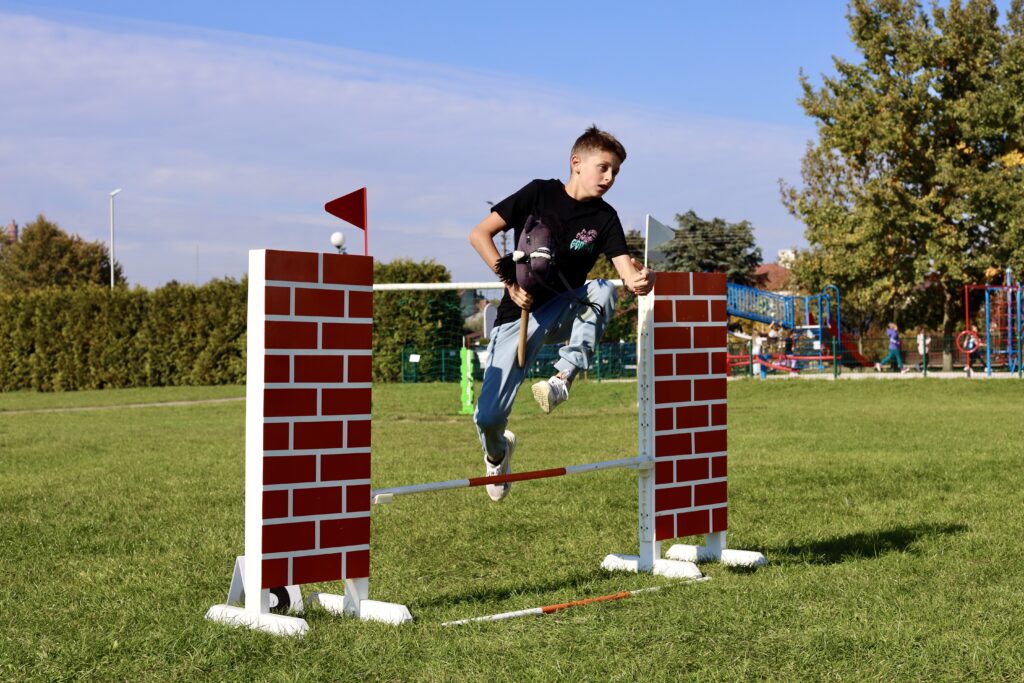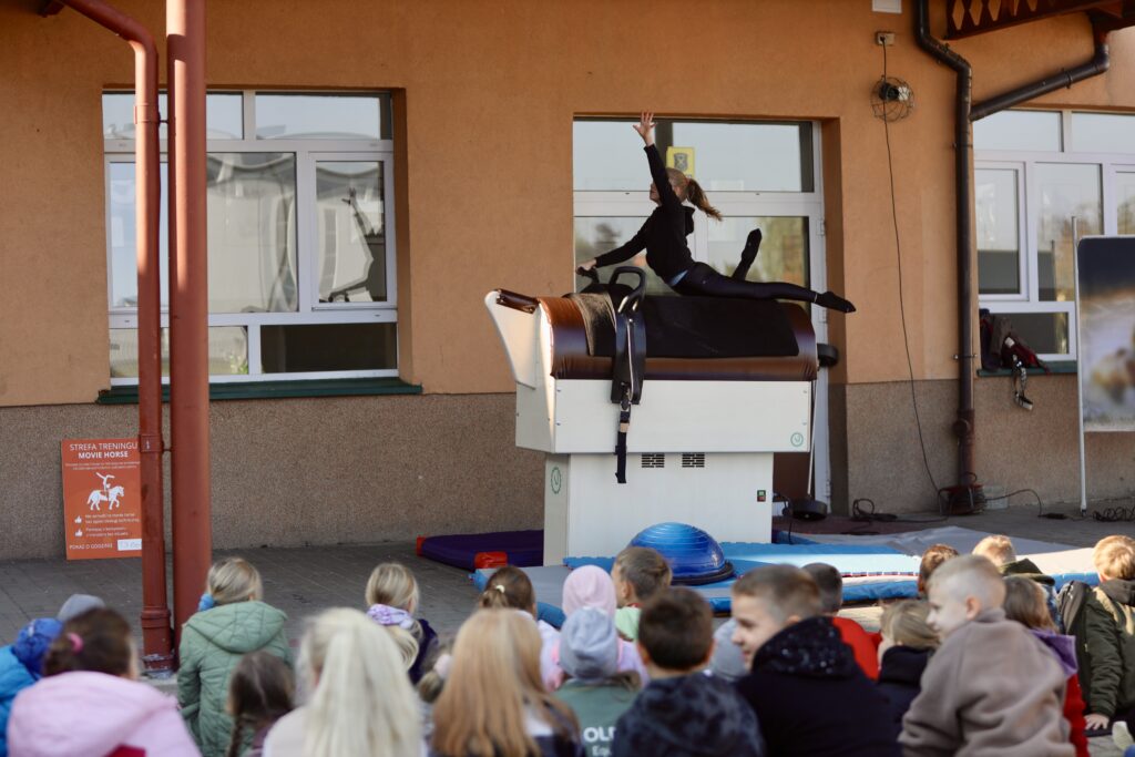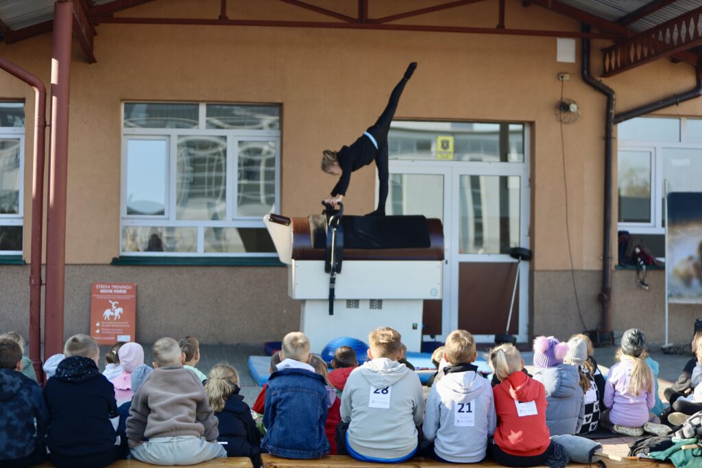 Uczniowie wzięli udział w akcji Upowszechnia Jeździectwa, którą organizujemy wspólnie z Ministerstwem Sportu i Turystyki. Przez cały dzień zorganizowaliśmy dla uczestników konkursy i zabawy z nagrodami oraz zawody hobby horse. W tajniki woltyżerki wprowadzała zawodniczka – Julia Skoczek. Dzieci mogły spróbować jazdy na sztucznym koniu – trenażerze do woltyżerki oraz spędzić czas z kucykiem i poznać podstawowe zasady opieki nad zwierzęciem.